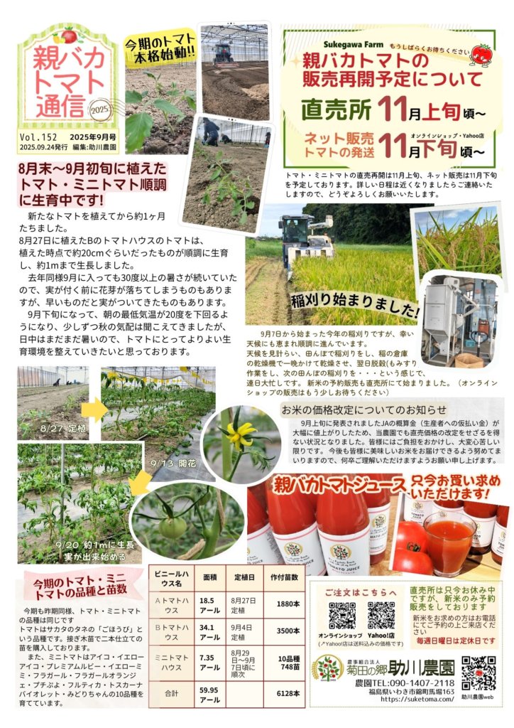 親バカトマト通信9月号 vol.152が発行されました。