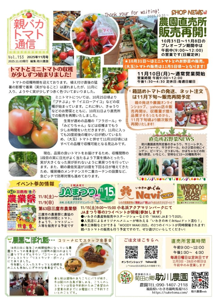 印刷したものは農園直売所にてお配りしたり、ネット注文の方へトマトの箱の中に同封したりして、助川農園の’今’をお届けしております!
