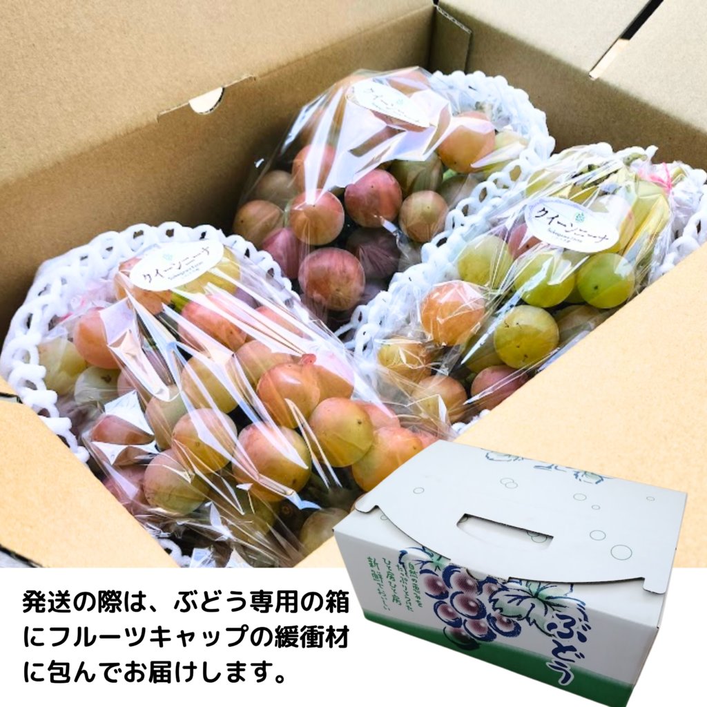また、房によっては種が入っているものもあり、大きさなど不揃いになる場合もございますのでご了承ください。